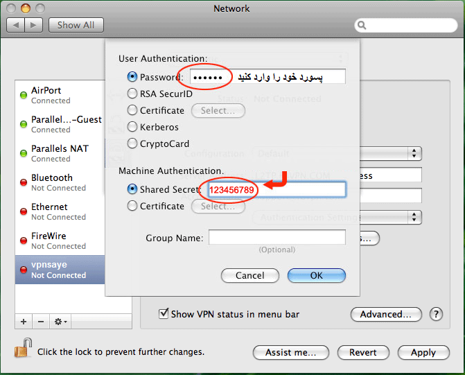در shared secret اعداد ۱۲۳۴۵۶۷۸۹ را وارد نمایید